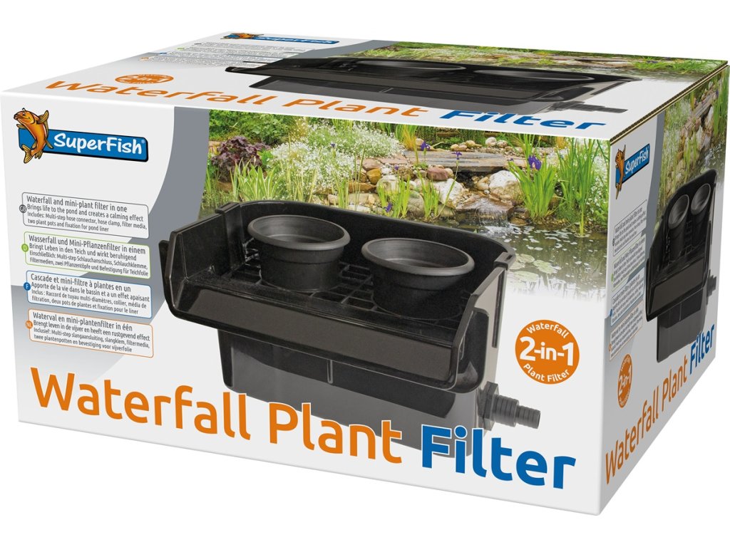 2 v 1 vodopád a jezírkový filtr s rostlinami. Dodává se s filtračním médiem, 2 květináči a příslušenstvím pro snadnou instalaci. Tento praktický vodopád vdechne jezírku život a zároveň funguje jako jezírkový filtr!