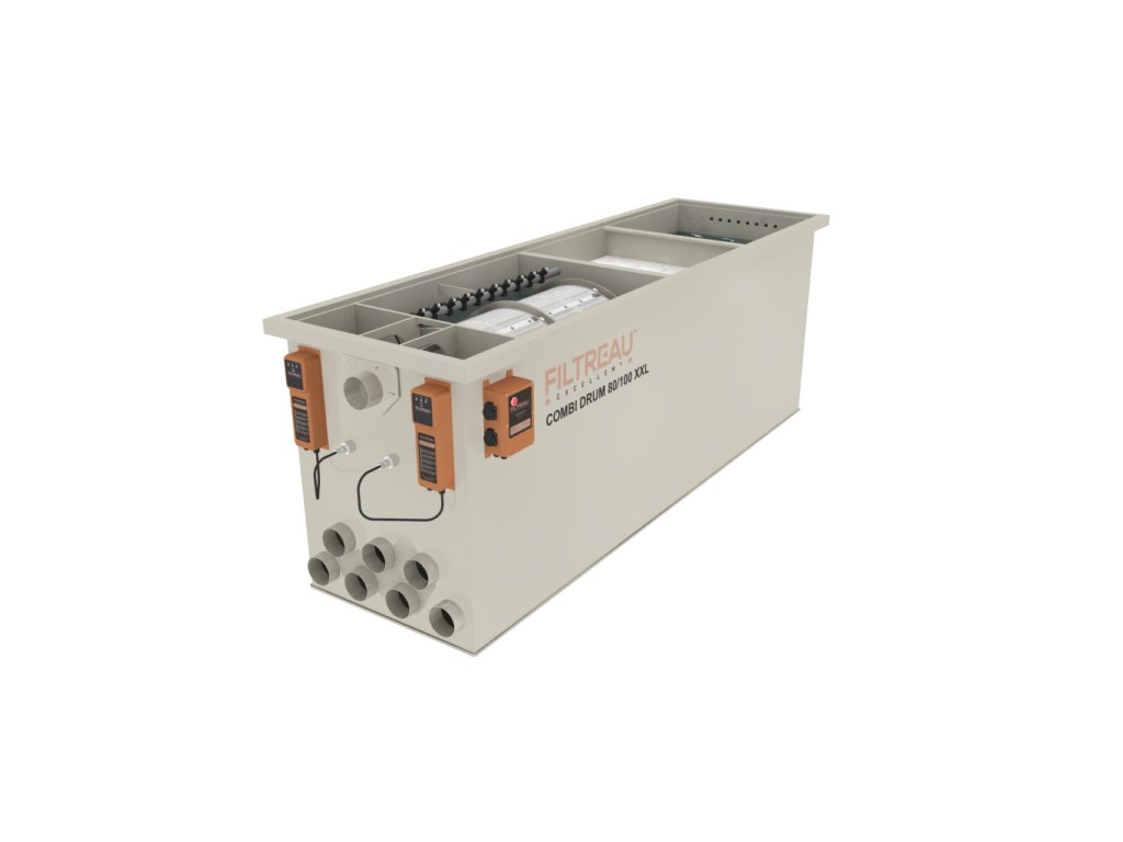 Kvůli nečistotám může voda v bubnu hůře protékat přes síťku filtru. To je signalizováno plovákovým spínačem, který aktivuje funkci splachování. To znamená, že se buben začne otáčet. Trysky pak stříkají vodu zvenčí proti rotujícímu bubnu.