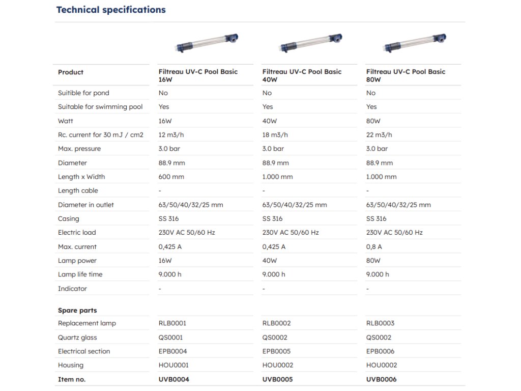 Filtreau UV-C Pool Basic zajišťuje křišťálově čistou vodu. Propracovaný design a vysoce kvalitní materiály vedou k vysokému UV-C záření o vlnové