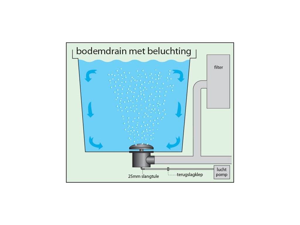 Extra spolehlivý spodní odtok 110 mm s víkem s pryžovou membránou pro provzdušnění rybníků. Průměr krytu je 38 cm (vzduchová membrána Ø34 cm). Doporučený přívod vzduchu je ± 20 litrů na metr hloubky vody.